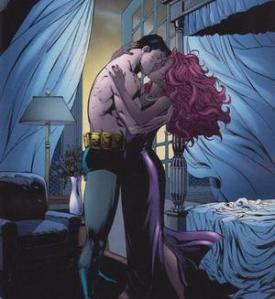 He is soooo not dead and reduced to nothingness . . . it’s obvious really. The shock of the fire attack addles Jonn’s brain, causing him to flee at super-speed and seek safety in a disguise. Inspired by old pal the Vixen, the memory-challenged J’onn J’onzz shapeshifts into . . . Jezebel Jet, international supermodel. Of course J’onn would seek out the world’s greatest detective to help him regain his memory. Mind, he never meant to fall for Bruce, but these things happen. He’s already had Wonder Woman and Zatanna’s interest, eventually all JLA-ers will desire the bat-love god.