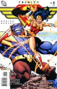 The action is good, as drawn by Mark Bagley and Art Thibert, but the characterisation? Good grief, writer Kurt Busiek surprises with surprisingly bad moments for Wondy and Supes. First of all Superman becomes a bit jealous that Diana may get to end the battle against Konvikt, then Wonder Woman gets all flirtatious about whether or not Batman and Superman will tell her to get some cuts checked out, in case she feels patronised. A stupid moment followed by a tremendously stupid moment – Busiek has been writing these characters on and off for decades, so where is this coming from? Is he trying too hard to compare and contrast personalities?