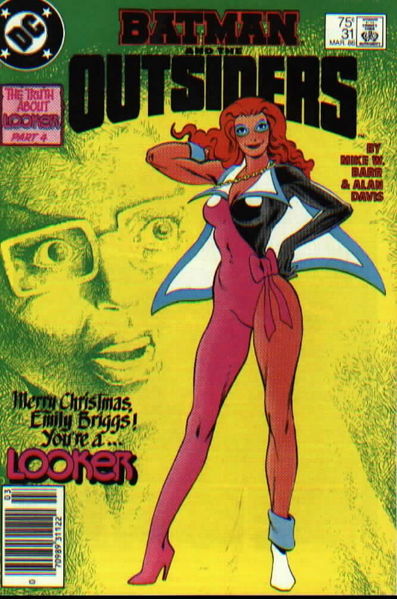Ah Looker, proud possessor of the worst name, shallowest personality and nastiest costume in DC history. Probably. Certainly, as created by Mike W Barr and Alan Davis she was a contender. All she wanted out of life was to move from plain to zoftig, and when her powers gave answered just that wish she adopted a name to reflect that (well, in US parlance – as a Brit who’d never heard the term, I pretended it was Cockney rhyming slang). Worse, she donned a one-legged costume with Margaret Thatcher pussy bow and complemented the new look with freakish Seventies Marvel eye-make-up (see Dazzler and Marionette).