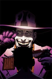 The Joker is massively overexposed across the DC Universe, but I’m delighted to see him in this book, as we’re being teased that there will be a final confrontation with Oracle, crippled by him in the iconic (and overrated, from a story point of view) Killing Joke. Before that, though, we get some lovely bits of Joker business, far superior to anything in the recent Batman movie. The best of these ties in with Stephane Roux’s lovely cover rather well.