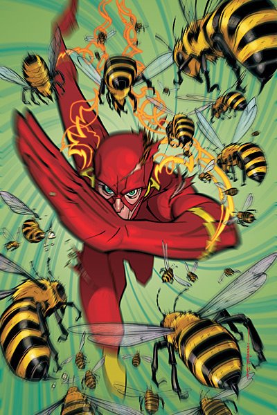 Brian Stelfreeze’s cover has grown on me since I first saw it online, with the blurring of the bees and twisting of the Flash cleverly conveying the idea of speed.