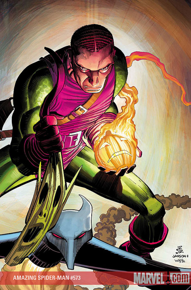In terms of the script Dan Slott also keeps to the standards he’s set in the rest of this arc, giving us pitch-perfect characterisations amid a rattling ride to the conclusion. While the main storyline – the Thunderbolts’ pursuit of Spidey for someone else’s crimes and the return of Norman Osborn to the webhead’s rogues gallery – are tied up nicely, little mysteries continue to build. I’m especially keen to follow Harry’s story, after a few comments from his dear old dad, including one that makes it clear that he’s still been comics-dead, which confirms that he was still a Green Goblin once upon a time.