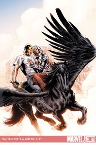 Inside, there’s some great stuff going on. Britain’s number one (and only) super-team are in Birmingham, battling refugees from the Dark Dimension usually seen in Dr Strange. The demon Plokta is tempting people with their heart’s desire, and using the energy he gains when they give in to create Mindless Ones, who remain among my favourite Steve Ditko creations. Captain Britain, in a moment of overconfidence, crosses a magical threshold in a bid to rescue long-lost wifey Meggan, while the Knight, Faiza, Pete Wisdom and Captain Midlands try not to think of what they really really want. Meanwhile, Spitfire and Blade the Vampire Hunter/Pompous Bore stop trying to kill one another and start flirting.
