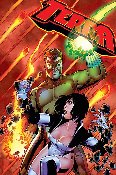 It’s the penultimate issue of the four-part mini and we learn just who Terra is, and what her relationship is to the two late heroines who went by that name. There’s a fight between our teenage earthmover and zombie master Deathcoil for the life of Geo-Force in which the main battleground seems to be the world of truly awful banter, more under-Earth races and two dastardly villains.
