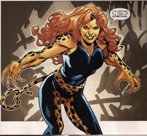 ‘Grrr, I am woman, hear me PURR! Or maybe just mewl a little.’ Honest, she looks as if she’s shaking newly painted nails dry, not primed to slaughter a superheroine. Please DC, go back to the Perez Cheetah, it knocks spots off the current design.