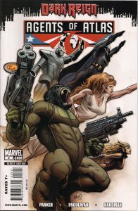 Well here’s a comic not suffering from ‘that difficult second issue syndrome’. Agents of Atlas 2 is at least as good as the debut book, as writer Jeff Parker shows more of the Atlas Foundation’s war on Norman Osborn’s rotten regime. Better yet, we have a second tale woven in, flashing back to 1958. Both begin at Edwards Air Force base, which I’d assumed Geoff Johns had made up for Green Lantern – shows how much I know. From there they diverge, but it’ll be interesting to see how they converge once more after the double cliffhanger here.