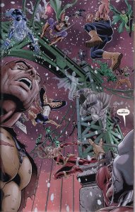 “That apart, Simone delivers another cracking script, clever, sly and witty.”>>That, right there, is why I will not read another Simone comic. She seriously misjudges tone – if you’re dealing with a bunch of sociopaths, then wit is the last thing to incoporate.>>Did they crack a joke when innocents were killed?