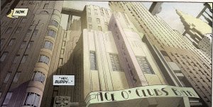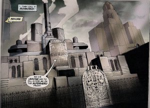 And as depicted by penciller Renato Guedes and inker José Wilson Magalhães, the ground floors of Metropolis are glorious. Indeed, the whole city has rarely looked better. This is a place with solidity, a city of stone fit for a man of steel. It’s Forties America with a touch of Stalinist baroque. And colourist David Curiel adds the final touch, lighting the buildings with sunlight or enveloping them in shade. The art team also do a tremendous job on Mon-El, painting him with a loneliness befitting a man who has spent long years in the Phantom Zone. His eyes are bright blue, but they’re haunted. As for the Guardian, he shines as befits a symbol of justice and hope since the Golden Age.