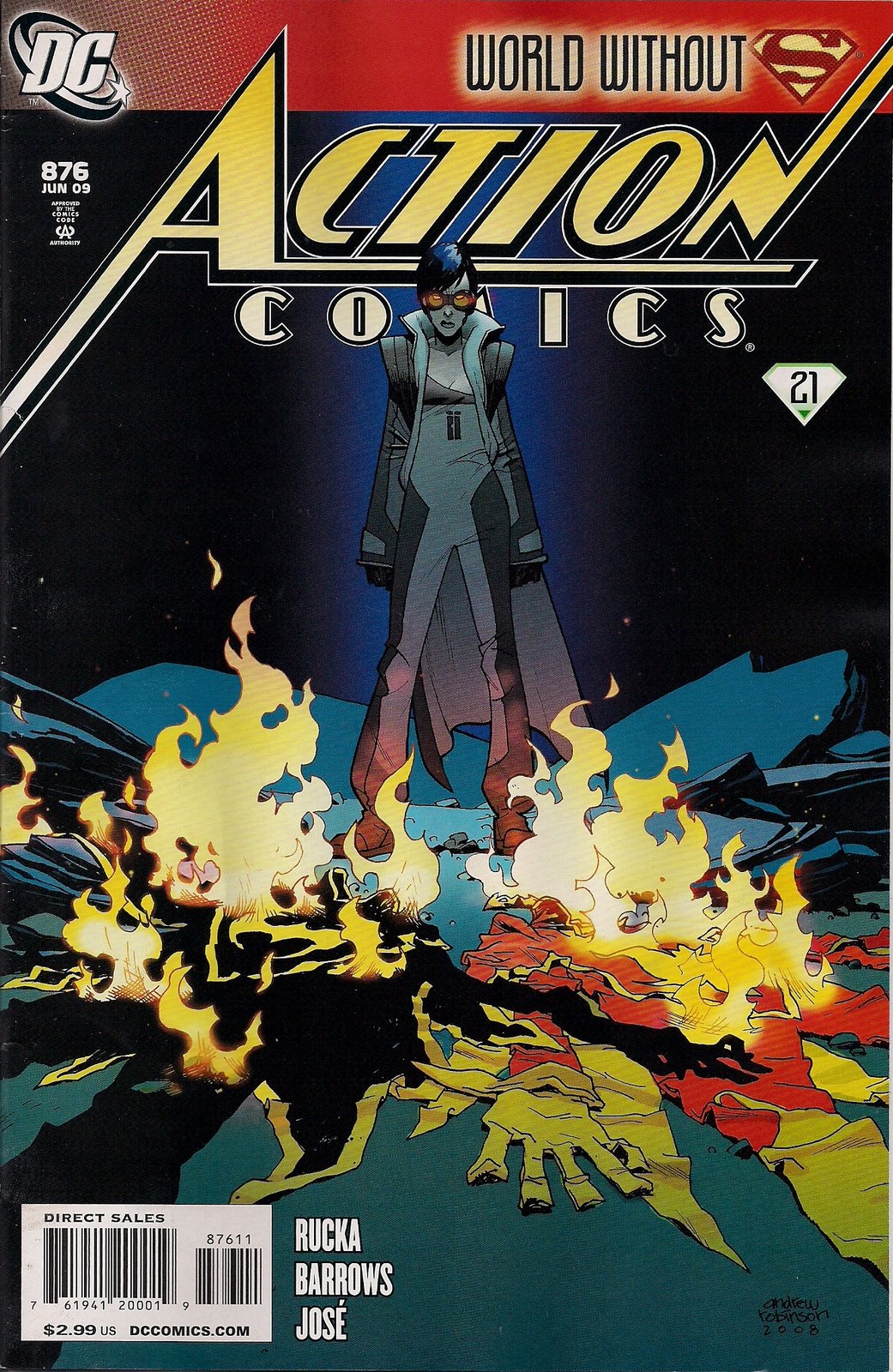 Penciller Eddy Barrows offers dynamic layouts, filled to busting with kinetic figures for the main storyline, while Sidney Teles handles the Lois scene with aplomb. Andrew Robinson’s cover illo has Ursa looking like a cardboard stand-up figure, while the burning costumes of Nightwing and Flamebird are too new to be recognisable; still, the composition is eye-catching and the logo remains an industry classic.
