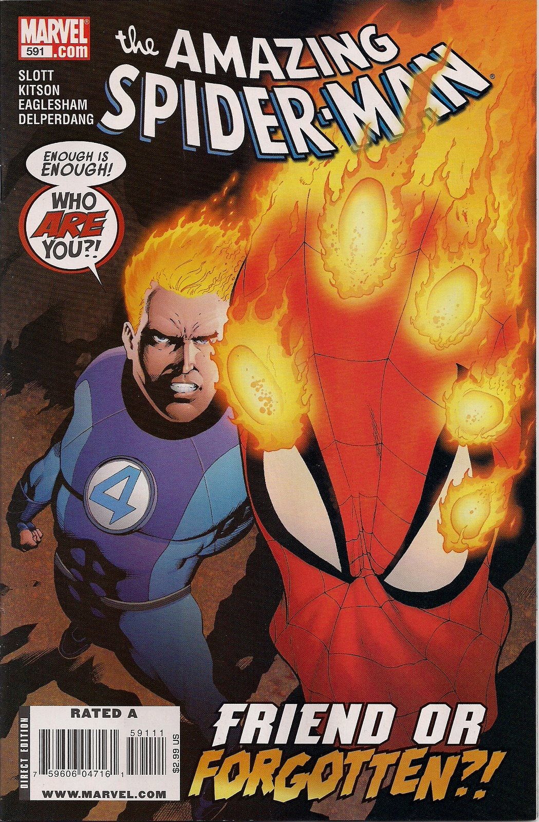 I shall now allow a typing blindspot to help me forget this latest daftness and instead salute the rest of the story, which was terrific fun. While Spidey and the FF are ending a war in another dimension, time is passing faster back on Marvel Earth. This allows a series of wonderful vignettes as we see the supporting cast’s stories move forward: Frontline reporter Norah and the rarely seen Randy Robertson get together; Aunt May starts dating J Jonah Jameson’s charmpot dad; Carlie and Harry get closer as she helps him recover from an alcohol binge; JJJ tries to woo estranged wife Marla; and Flash Thompson’s post-amputation rehab continues. In the Sixties Spider-Man grew great partly on the strength of the soapy supporting cast and it’s heartening to see how editor Stephen Wacker and the writers recognise this. Once more I’m buying Spidey as much to see Betty Brant and Joe Robertson as I am for Peter, and I love it.