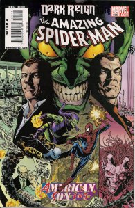 The new-look Menace – she’s no longer letting people assume she’s a guy – is a treat and the action scenes are splendid (though I’d like to see a few movement lines, it’s become part of the grammar of superhero comics for a reason). The cover is a montage in the classic Spidey tradition and it’s almost a winner, but is far too busy. There’s about half an inch of bare space at bottom left, which I can only imagine is the result of Jimenez forgetting about when he popped off for a soda. The cover’s fussiness is made worse by too many mastheads – as well as the Amazing Spider-Man logo we have Dark Reign and American Son fighting for space.