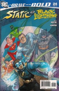 Well, the coat’s here, as expected, but this issue’s team-up with Black Lightning lets me know there’s more to Static than static. He manipulates electro-magnetism, as well as firing standard comic book bolts (well, standard for today; I’m old enough to recall electic blasts as yellow, not blue). And as scripted by Matt Wayne, he’s a lot wittier than I’ve seen.
