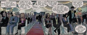 Oh, and they get five million points for actually daring to draw the post-Jackman Wolverine as a short-arse. Nice one, chaps. And nice one to Dean White for superb colour work, especially in a window washer scene (I’ll assume Flash Thompson was trying out a blond look for the ceremony). Joe Caramagna letters in fine style – his fingers must be knackered, if he does it by hand.