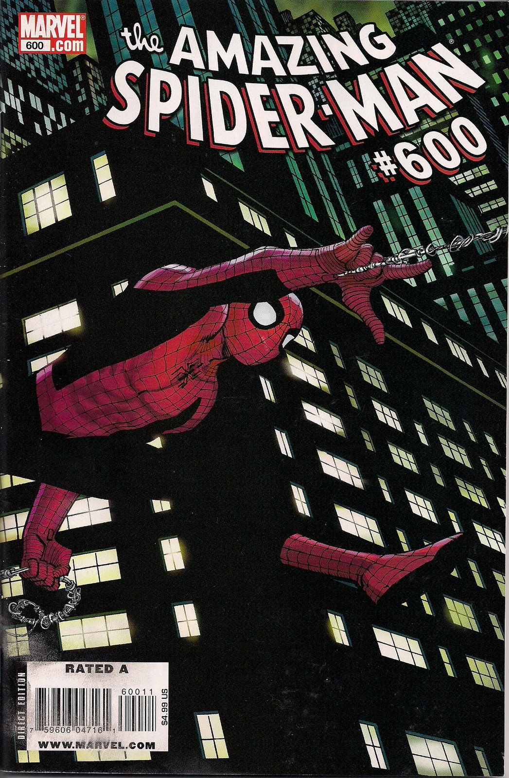 The Romita Jr/Janson/White cover is a wraparound, though it didn’t need to be, what with the back portion being mainly skyscrapers. The part showing Spider-Man, though, is something to treasure.
