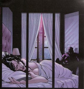 The first image in this issue took me right back to the Seventies and the cover to issue #246, with Diana in bed as a mystic force attends her. The shot is almost certainly a coincidence, but one I enjoyed. What follows is one of the best scenes Gail Simone has written since she took on this book, with a terribly creepy Ares, god of war, appearing to Diana and taunting her with weasel words. Artist Bernard Chang cranks up the atmosphere so Ares seems like the ghost Ebenezer Scrooge never met, there not to threaten, but to deliver a message. And their panel of a godly tongue licking Diana’s lasso is one of the ickiest in a long while – there may be a subtext but I’m just not going there.