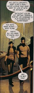 Scandal’s girlfriend, Liana, shows up this issue, hale and hearty; unless some pages were stuck together and I missed something, last time we saw her it seemed a spurned admirer was on the verge of doing something nasty to her. I guess he changed his mind. Men. So unreliable.