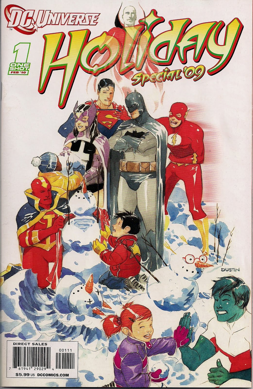 Look, it’s Martian Manhunter in a story which shows Donna Troy and Dick Batman as JLA members in good standing, setting it after Blackest Night, which means the Martian Manhunter will be back from the dead before we know it. Oh all right, it’s just J’onn in a non-continuity short, but if you can’t dream at Christmas, when can you?