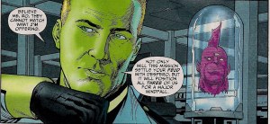 Regular inker Scott Hanna also deserve a lot of credit, especially for the delicate way he finishes Dox’s face, giving him a benevolent Paul Newman quality that belies his methods (in one incident he destroyed a naive young girl’s body to bestow on her the power set he needed, without bothering to so much as warn her, never mind ask permission). Jose Villarrubia somehow keeps all the colour schemes from clashing while finding other hues for backgrounds and props, and Travis Lanham letters with pizzazz.