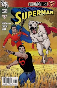 Behind a lovely Cafu cover featuring the slobberiest Krypto ever, it’s bits of Legionnaire business all round. The Espionage Squad finally reveals itself to Mon-El; police colleagues, the deli guy, a hover-cam . . . future teens all. But we still don’t learn what Chameleon Boy, Tellus, Starman, Sensor Girl, Matter-Eater Lad, Element Lad and Quislet are up to in the 21st century, as this issue proves a lead-in to the next issue of Adventure Comics, which will take us forward into the Brainiac & The Legion of Super-Heroes event in the Superman titles, which will herald the new Legion strip in Adventure Comics and its own book . . .