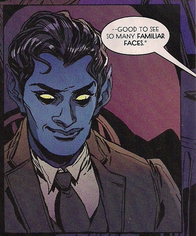 Next up we have Nightcrawler rescuing a damsel in distress at the cabaret. And she rescues him right back. It’s a simple story, with the unique selling point that the narration comes via moritat – a murder ballad. It’s a toughie to pull off in print – Alan Moore tried it in Warrior’s V for Vendetta strip with This Vicious Cabaret, which may have been one of the inspirations for G Willow Wilson’s story. I’d love to hear the ditty here set to music, though, for the fun of it. Maybe Marvel has a smoky-voiced in-house chanteuse who could put the song across on a podcast? Meanwhile, good on Willow for trying something different, and Ming Doyle for so ably illustrating – the first shot we see of Kurt superbly captures the essence of a man you can never truly know.