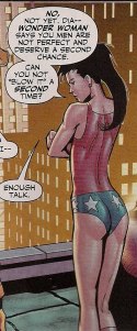 Check out, for example, the teenage Donna Troy’s Wonder Girl costume, apparently created with body paint and strong liquor. While there are one or two awkward moments I enjoyed the art – presumably split by time period, with Syaf handling the current moments and Clark the past (apologies to both gents if I’ve gotten that wrong). Syaf does a brilliant job of rising to the script’s more overwrought moments (Donna is apparently auditioning for Weeping Gorila Comics for much of the book) while Clark captures something of the atmosphere of the recent Teen Titans: Year One art of Karl Kerschl. Inkers Dave Beaty and Vicent Cifuentes do good work here too.