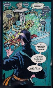 Spider-Man meets black whimsy in this story written and illustrated by Brendan McCarthy or, as he playfully styles himself here, ‘McMarvel’. A mystical tome* Dr Stephen Strange purchases by mail order (ha!) turns out to be linked to extra-dimensional spider-demons and when one breaks through into the Marvel Universe it’s thrilled to come across Spider-Man; a tasty dish to set before the king. Can Dr Strange set things right or will Peter Parker’s soul be consumed?