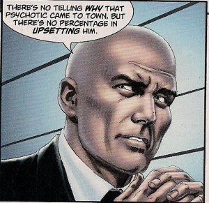 He knows due to something I’ve not seen previously, but it’s a device that makes massive sense given Lois’ position as Mrs Superman. And that role also explains just why she puts up such a good fight against kidnappers, using martial arts – presumably Kryptonian Klurko. Luthor is impressive here too, positioned not simply as Superman’s nemesis – while his motives and ends are very different, his methods and thought processes aren’t so far from Batman’s.