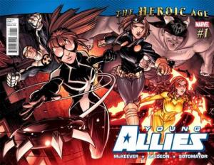 As well as Avengers Academy, Marvel this week brings us Young Allies, named for the Golden Age kid group book published by Marvel predecessor, Timely. That had a Bucky and a Toro, this one has a Bucky (currently going by Nomad) and a Toro. Mind, Bucky/Nomad isn’t a gun-toting teenage Nazi-smasher but a patriotic schoolgirl, and Toro, rather than being a flaming boy, is a man-bull.