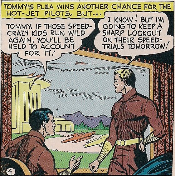 As it is, Tommy isn’t an active participant in the conflict, acting as the spur for Magog’s heroics rather than joining him, but it’s fun to see him – and he’s hardly changed a bit since 1953.