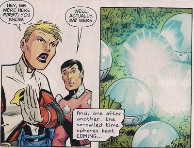 Clark’s thrilled to bits … until another trio shows up, from further down the time stream. They’re followed by multiple Legion sub-teams from various comics continuities, with the TV cartoon Brainiac 5 even putting in an appearance. The interaction between the competing members, and exasperation of Clark, makes for a tremendous little tale.