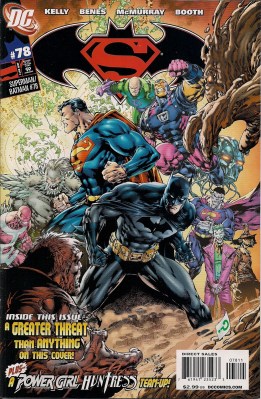 I suspect that this joyous bagatelle was commissioned for Superman/Batman #75 (click for review) but was set aside either because that book features a charming Billy Tucci short with a similar set-up, or because the Kellys’ story deserved the spotlight only its own issue could assure. That would explain it not being book-length.