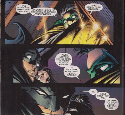 En route we see a little of Commissioner Gordon’s attitude towards last issue’s assertion that Bruce Wayne funds Batman, and learn that bad guys are already striking at the billionaire through his associates. Best of all, Alfred enriches the often-shallow figure of Bruce Wayne by letting Dick and Damian know that he didn’t treat all his lady friends as Bat-beards.