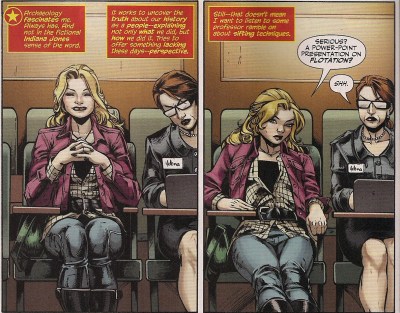 Ah, simplicity, I love you. Over in Wonder Woman there’s continuity crushing and confusion aplenty as a tweaked Diana searches for the truths of her life over the course of 12 issues or more. In this one-shot, Wonder Girl visits her mother at an archaelogical conference in London and foils a heist by mud-morpher Lady Zand, with the help of future Teen Titan Solstice.