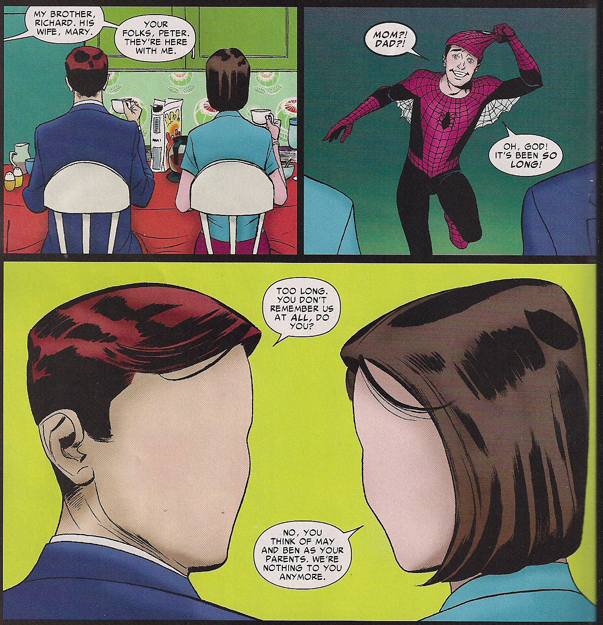 … the funeral is over, Peter is asleep, and a dream comes. Uncle Ben welcomes Peter into an afterlife populated with everyone he’s ever known who has passed over: his parents, school pal Sally Avril, Jean DeWolff, the Kid Who Collects Spider-Man, villains by the dozen. And they’re all very keen to talk to him.