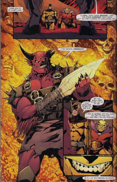 We’re offered just one side trip away from Hell, as we see Scandal’s girlfriend, Liana, in deep trouble, and with her villainous friends so very far away, I fear she won’t be part of the supporting cast after next issue. I hope I’m wrong, I like Liana – quietly dignified as she’s treated by Scandal as sloppy seconds – and would hate to see her gone.