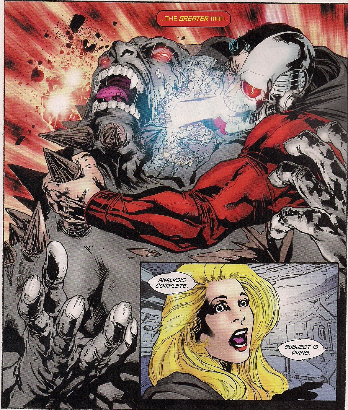 Doomsday has hunted down the Cyborg Superman, Hank Henshaw, at the JLA Satellite while, trapped inside with them, are Supergirl and Batman. Outside, Blue Lantern Saint Walker and Starman Mikaal Tomas are helpless as the station morphs into the face of, first, Henshaw, then Doomsday. Neither bad guy is much interested in Batman, so he’s sidelined by Henshaw and made to fight constructs of some of Earth’s most heinous villains – can he stay alive without the help of Supergirl, who is struck down by a mysterious malady?