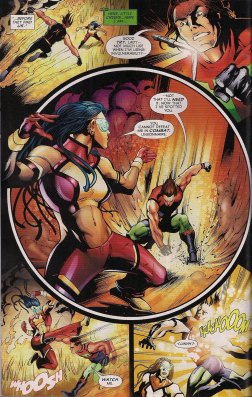 It’s the Legion of Super-Heroes vs the Legion of Super-Villains in an action-packed instalment. Given that LSV leader – well, tyrant, actually – Saturn Queen has only recently begun gathering her troops I was expecting a longer preamble prior to any meaningful confrontation, but here we have the new LSV surprised by the 31st century’s super-teens. As for who comes out on top, there are bumps and bruises on both sides after a series of killer confrontations.