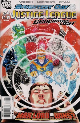 Secondly … he got away? The JLI had him in front of them, broken and bruised, and let him hit a button and escape? I heard Winick on iFanboy’s Don’t Miss podcast plugging this final issue, saying that this was one of those rare times in comics when a story has a planned ending. He insisted that while there would be the odd loose end opening up further stories, the Generation Lost arc got to have a proper conclusion.