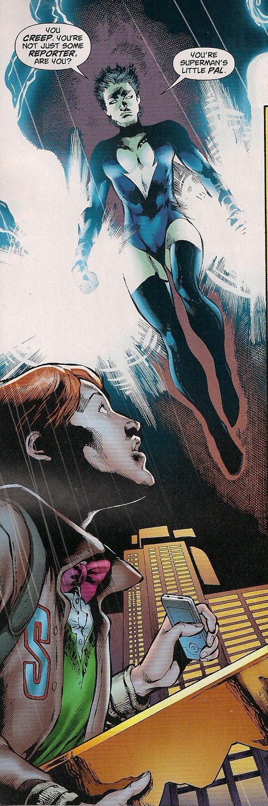 2. I suspect Chris Roberson is a fan, or, he thought it'd be ironic to have Clark be a fan of the hero invented to replace him in post-Crisis JSA adventures. I hope they have a proper team-up before Roberson leaves.