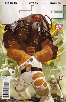 The only artistic iffiness with regards to FF #3 relates to Daniel Acuña’s cover, with its soft focus, doughy Thing. And that FF logo is just terrible, fading out of sight – I missed this issue on my first go-round of the comic shop shelves, could we have a more powerful, less designery masthead please?