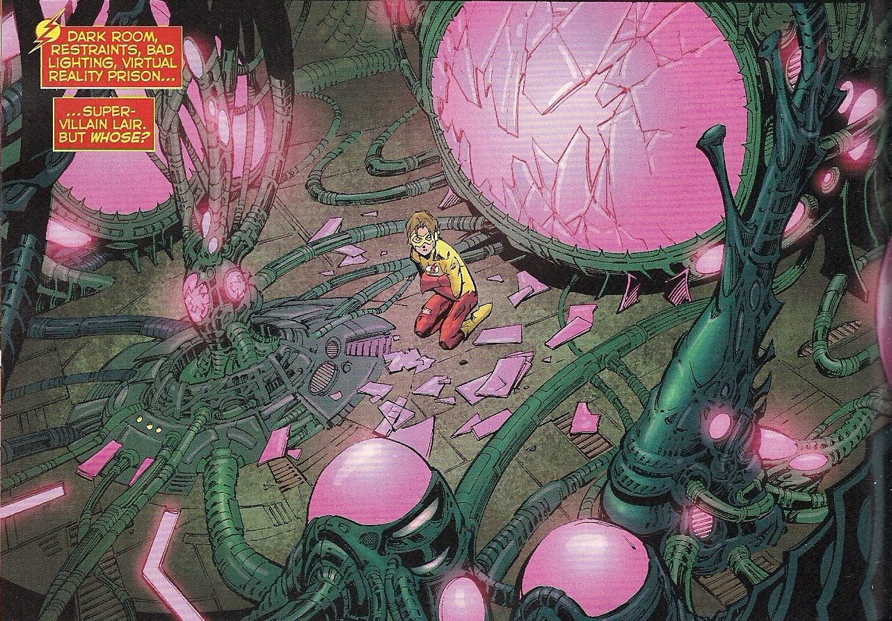 The story opens with Bart being verbally abused by grandpa Barry Allen, and while he takes it for a while, Kid Flash soon twigs that something’s wrong. Having spent years in a virtual reality environment, and inherited some of reporter grandma Iris Allen’s observational skills, he’s able to analyse the situation. Soon he breaks the hold a brain machine has on him, encounters his captor, Brainiac, and is rescued by a familiar, yet decidedly different, version of recent irritant Hot Pursuit. The issue ends with a time-twisting cliffhanger that guarantees I’ll be back for the next two instalments.