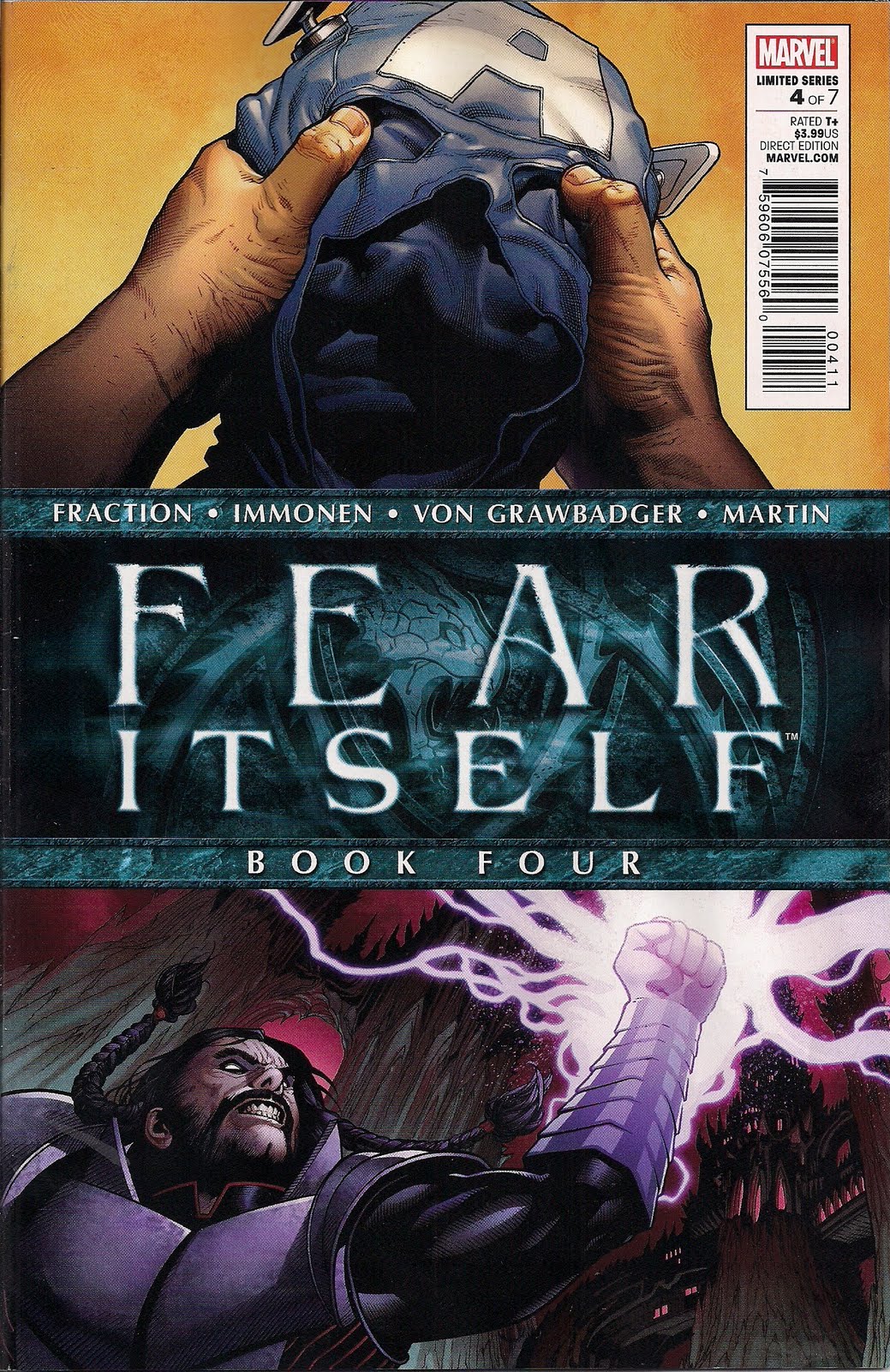 Nevertheless, this is the best Fear Itself yet. Where previous issues have felt like a crossover sampler, it finally seems as if there’s a story slipping into place. I wasn’t going to bother with any more tie-ins, but this issue gets Marvel a stay of execution – no more rubbish like The Deep, Fear Itself: Fearsome Four, Fear Itself: The Home Front, or Fear Itself: Youth in Revolt, but I won’t penalise the comics I usually buy. I’ll pick ’em up and hope for the best. At $2.99 for 22pp of story and art, this is a dollar overpriced, but that’s Marvel for you – greed itself.