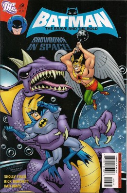 Batman and Hawkman beat Byth, with a little help from a friend. Bruce accompanies Carter as he hauls the shape-changing villain to Thanagar, but on the way they’re attacked by Byth’s men. Can the Winged Wonder and Gotham Guardian withstand photon torpedoes and, worse, Byth’s mocking tongue? And what happens when a brief power outage frees an awfully annoyed alien?