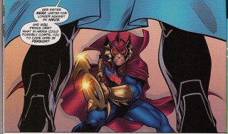 Considered in isolation, this issue’s cover –  a blood-spattered Mera – is DC going over the top. Remember what was on a variant for Flashpoint #2, though, and the company seems a model of restraint. Is it only longtime fans like me who don’t think the promise of bloody violence should be used to sell a comic book?