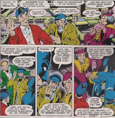 This giant issue is rounded out by ‘Dark Messenger of Mercy’ from 1979’s Batman #307, an entertaining mystery by Wein, John Calnan and Dick Giordano. It’s plot heavy and talky, but given that comics of the time only had 17pp to play with, I appreciated the value. Wein is on form, with marks subtracted only for some appalling Cock-er-neys. Gregorian Falstaff also gets a mention, and Lucius Fox and Alfred are present and correct, one supporting Bruce Wayne, the other, Batman. Commissioner Gordon is likewise on hand and on form in both stories.