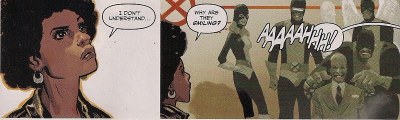 But if I’m to continue with this otherwise well-thought-out story, I’m going to have to just accept. And I do want to continue, as the philosophical row brewing between Logan and Scott is played out via compelling action and character sequences. Plus, writer Jason Aaron comes up with terrific incidental moments such as this. Idie’s incredulity is entirely understandable, given the X-Men she knows (click on image to enlarge).