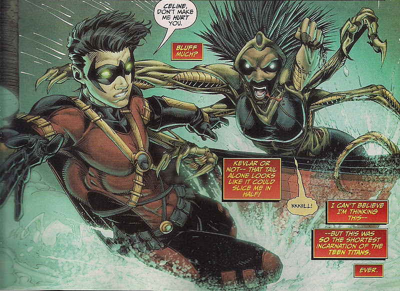 Oh, and I wish DC had decided beforehand whether or not Teen Titans groups have previously existed. Last week DC was publicly saying no, here Tim makes it clear that Titans have clashed with villains plenty of times (click on image to enlarge). The uncertainty is distracting.
