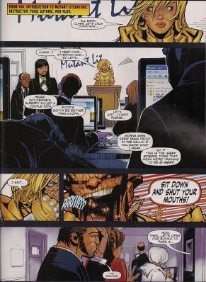 At Logan’s side are Kitty Pryde as headmistress, Beast as Vice Principal, Iceman handling accountancy, Husk in charge of literature … they may not have a teaching certificate among them but the students certainly won’t be bored.