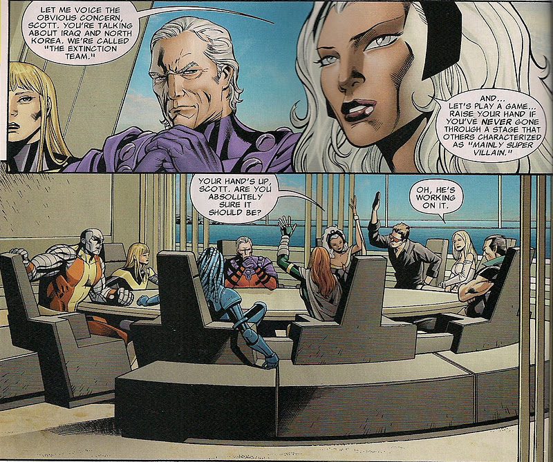 Utopia leader Cyclops gathers his lieutenants and announces his latest notion – the Extinction Team. They’ll protect mutants and humans alike, and their world-saving displays of power will hopefully deter humans from victimising mutants. His thinking is that as non-mutants fear the X-Men without any show of force against them, they may as well amp up the forcefulness and make the ordinaries so afraid they’ll back off.