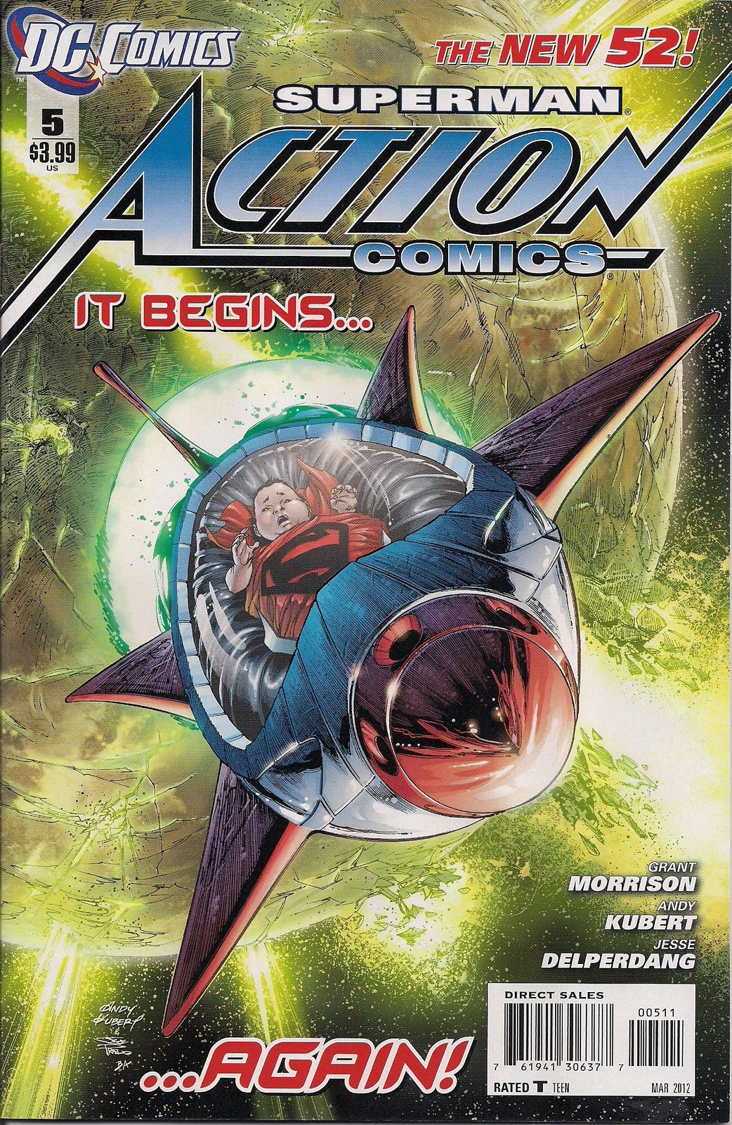 Details I like include Lara being involved with the rocket design – in previous histories she had been a trainee astronaut – though I could live without the awful term ‘mothermatician’; Jor-El specifically telling the computer to find a planet that would let his son ‘seem to fly’, presumably to allow him to escape any future planetary extinctions; the mention of Kal-El hearing Krypton explode, a memory that will haunt him; Jonathan and Martha’s resourcefulness at the start of their relationship with Kal mirroring Jor-El and Lara’s at the end of theirs. And I’m not sure how Morrison did it, but this telling of the origin made the latter seem closer to us, not so much aliens sending their child into space in a rocket as parents tossing their baby out of a burning building and hoping that, somehow, he’ll be okay.